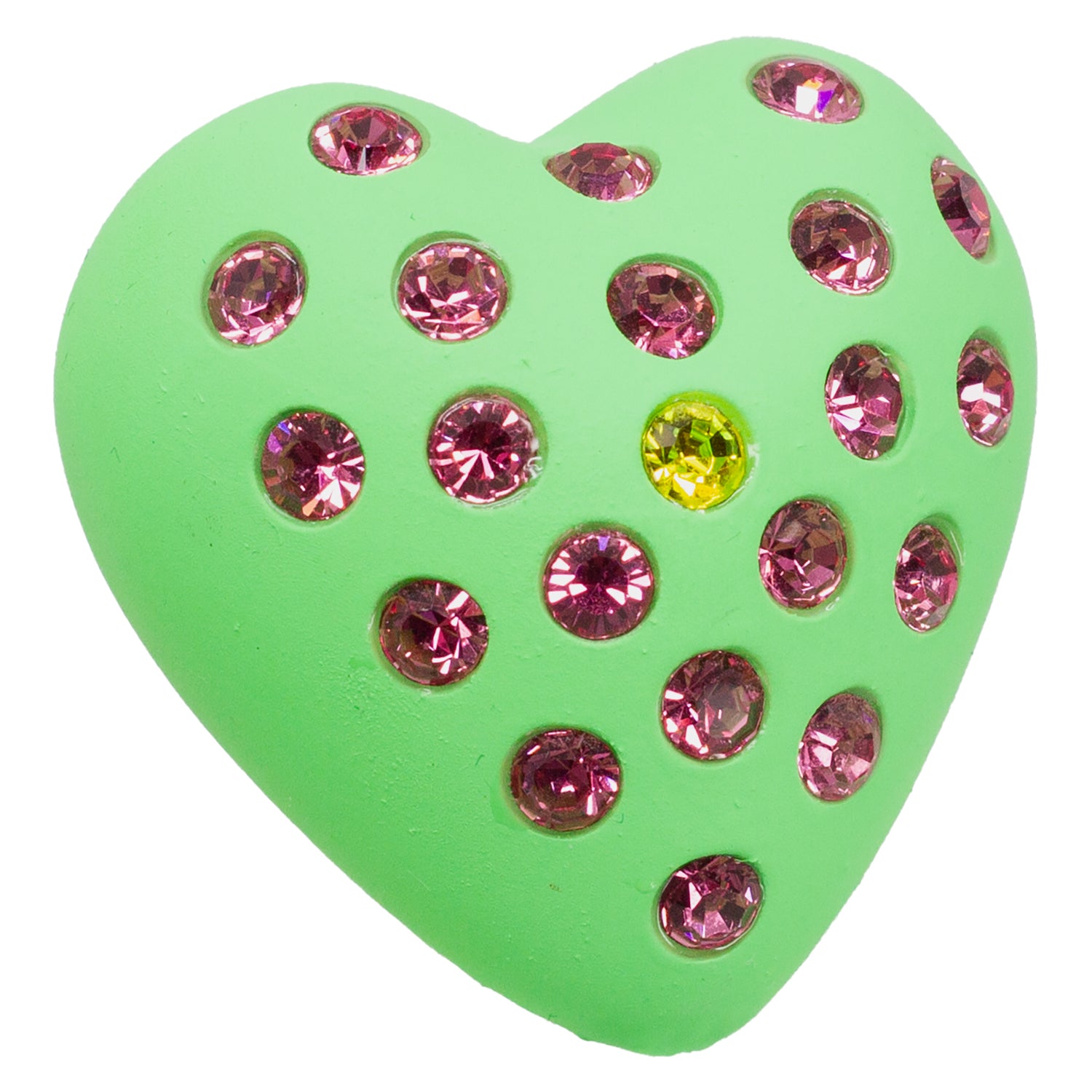 The Watermelon Heart Puff Ring says everything you want to say and more, with its defining details. The deliciously thick heart puff is embedded with citrine and rose crystals like a juicy watermelon, and sits on a solid sterling silver band engraved with our signature logo and "you are loved" phrase on the inside. Turn it upside down and gaze upon its silhouette. The perfect combination of watermelon, heart, and butt.